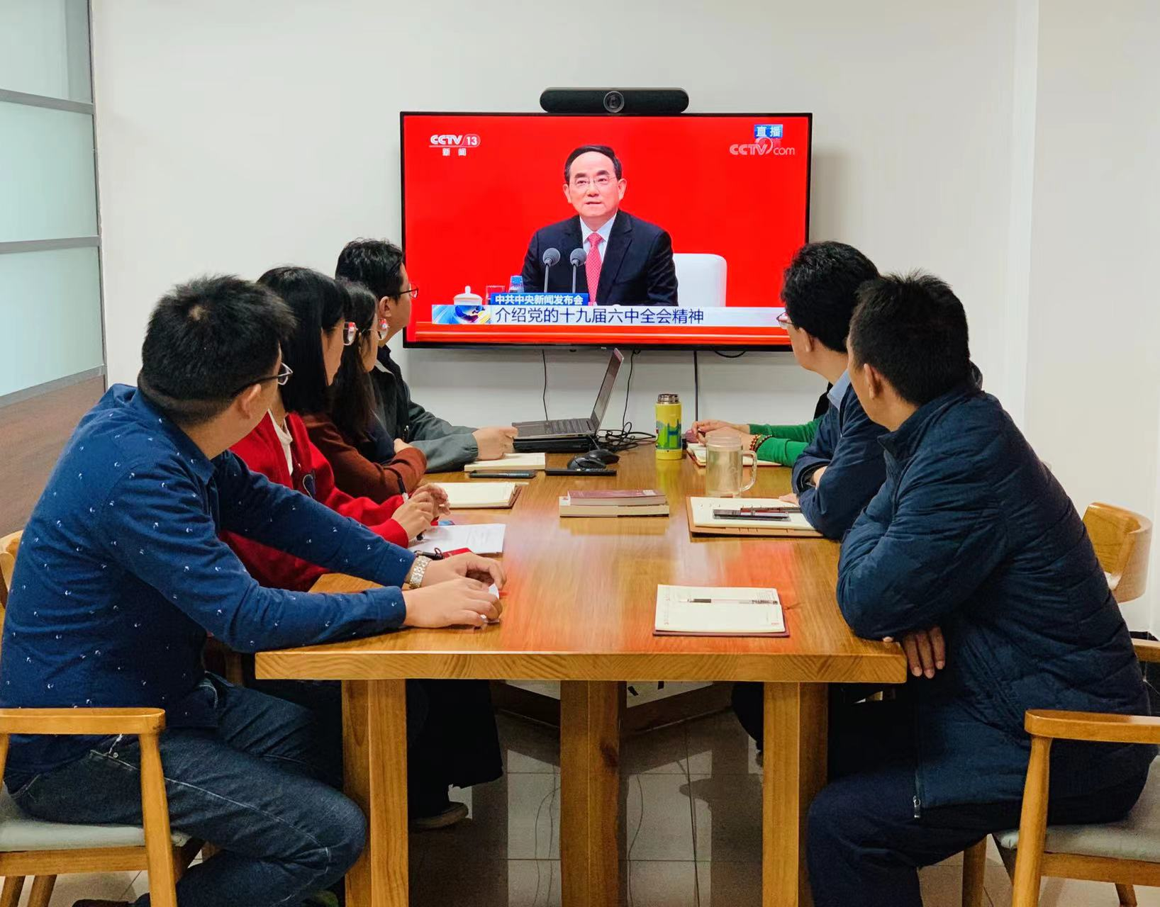 ??? 11月12日,中共中央舉行新聞發(fā)布會(huì),介紹黨的十九屆六中全會(huì)精神,華特道材黨支部組織全體黨員干部收看現(xiàn)場(chǎng)直播,并交流了心得體會(huì)。